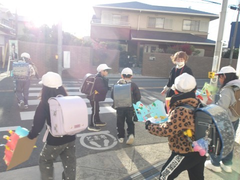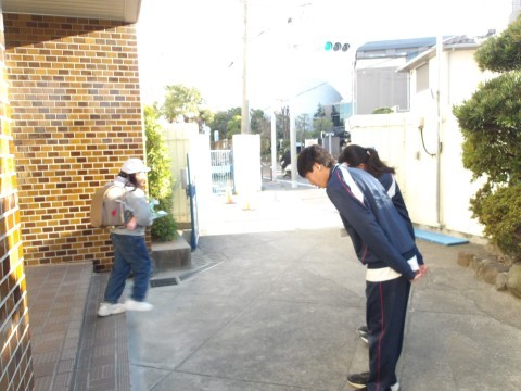 職業体験の中学生が,帰りのあいさつ運動をしてくれています。