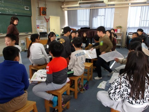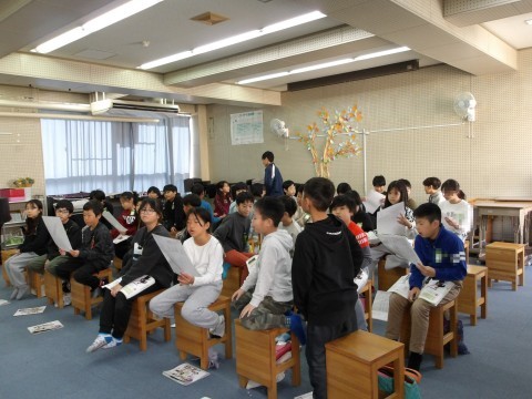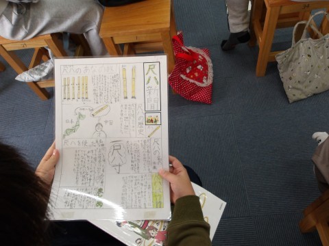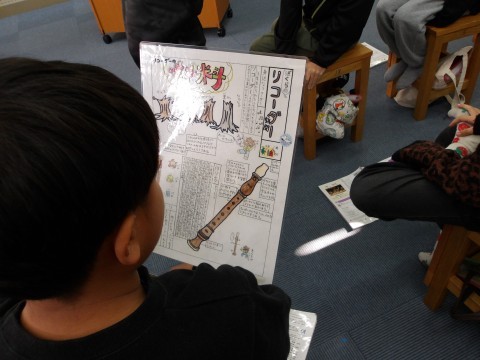 音楽では,木管楽器について学習をしています。どんな楽器なのか,調べて新聞にしてあるものを読んで,学んでいます。