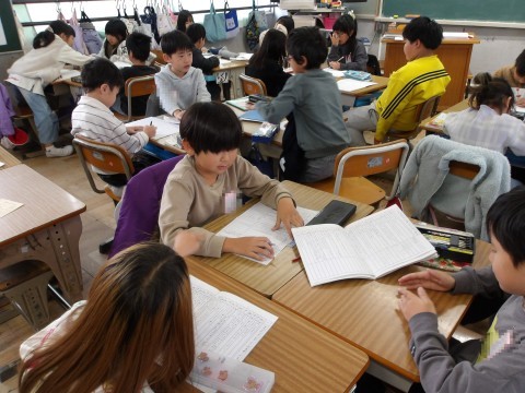 国語「みきのたからもの」では,言葉の使い方,言い方をグループで話し合しあいながら考えています。