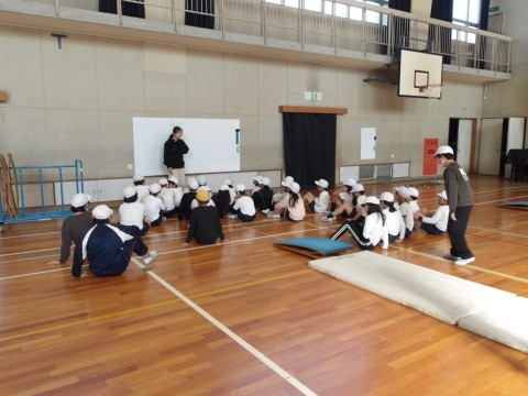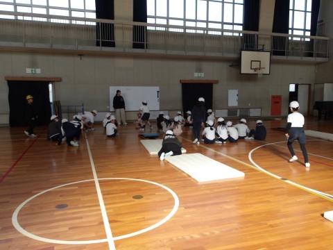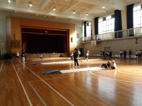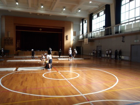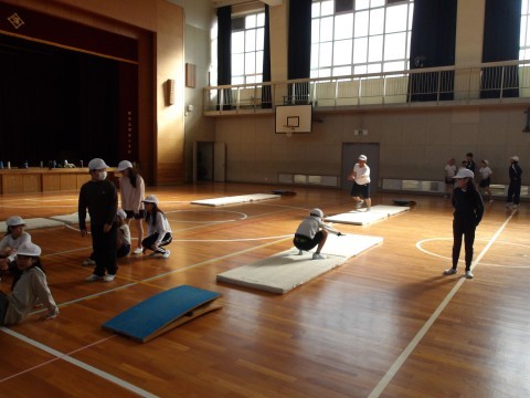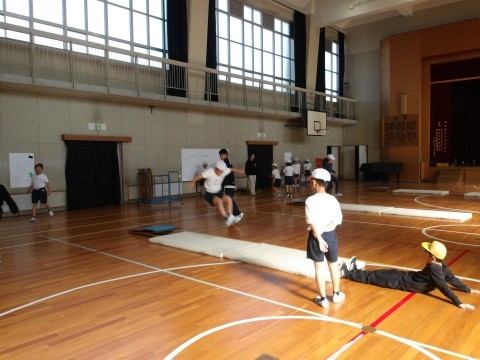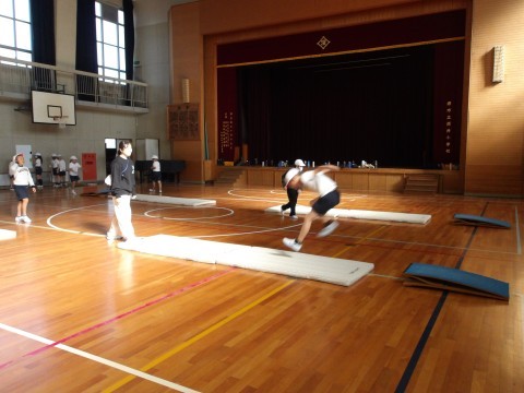 体育では,陸上競技の高跳びの学習をしています。踏切や,片足・両足で跳びこす練習をしています。