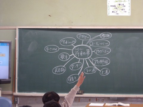 道徳では,「将来の夢」についてマップを書いて考えをふくらまし,発表しています。
