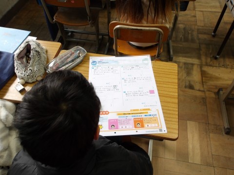 算数では「たしかめよう」のテストが行われています。集中して最後まで粘り強く取り組んでいます。