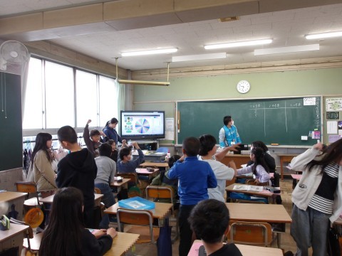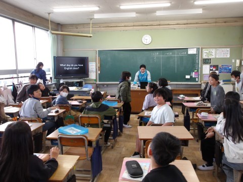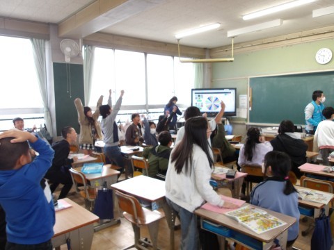 英語では,これまで学習したUnit1~6の復習をクイズ形式で取り組んでいます。いろいろな表現方法を学びましたね。