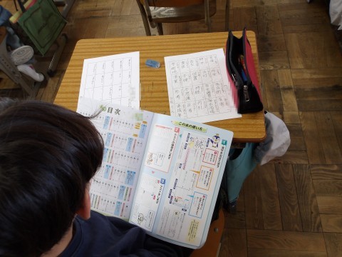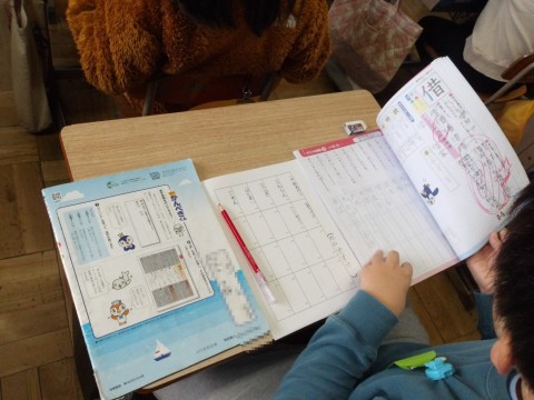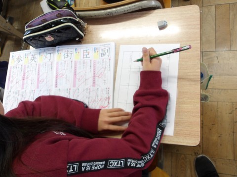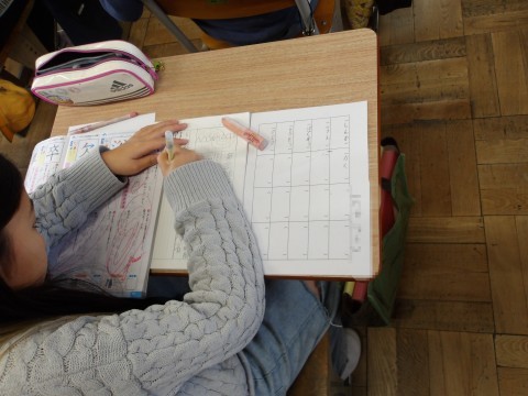 漢字の学習に取り組んでいます。自分で問題を作り,友だちとに解いてもらいます。