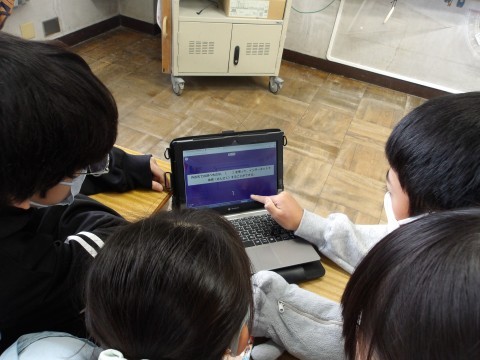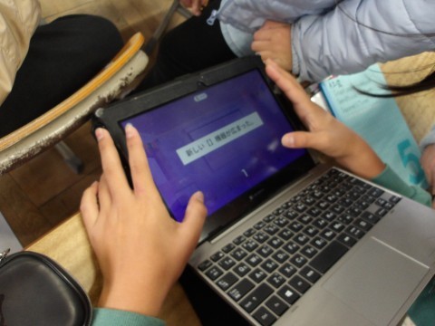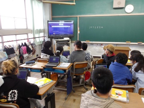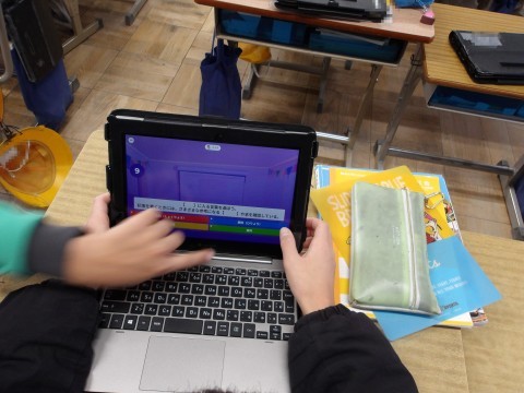 社会ではカフートを使って復習をしています。早押しになっているので,問題を読み落とさず速読して答え,正解率を競っています。