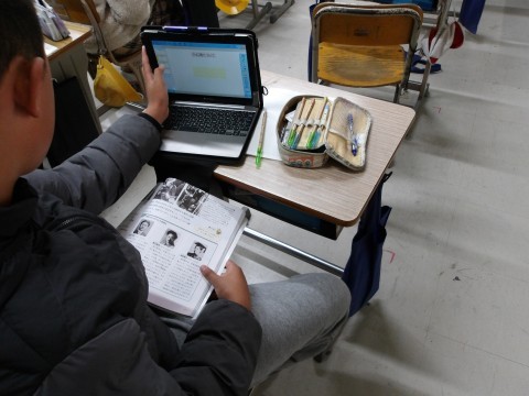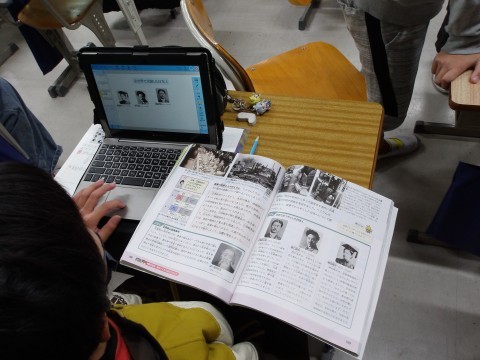 社会では,明治時代の国内の様子について,「女性の仕事」「公害について」「世界で活躍した人」に着目して調べまとめています。個人でもグループでも学び方は選択して行います。