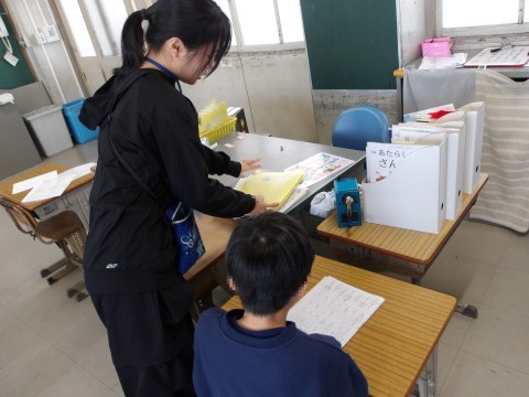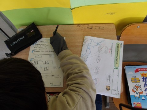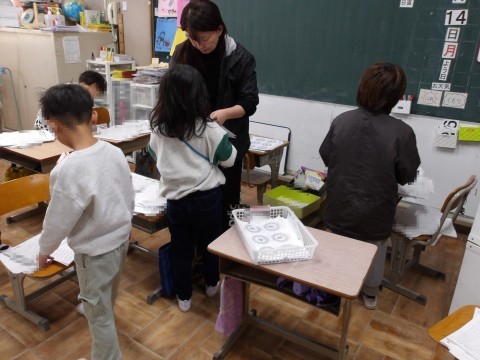 あおぞら学級では,それぞれの学年がいろいろな課題に取り組んでいます。帰ってきたテストを整理したり,自分の課題に取り組んだりしています。また,友だちの頑張りを形にしてあげたいという思いをメダルに込めて制作している人もいます。素敵な行動ですね。