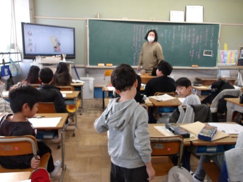 道徳「もうすぐお正月」では,家族の一人としてどんな気持ちで過ごすことが大切かを考えます。自分が思ったことをしっかりと伝えています。