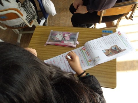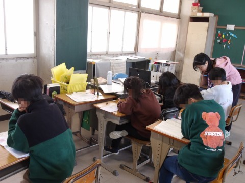 先生や友だちと一緒に,集中して学んでいます。