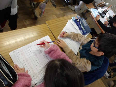 算数では,かけ算の問題をたくさん解いています。解けば解くほど覚えられるので,たくさんの問題にチャレンジしましょう。