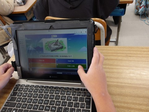 理科では,これまで学習したことをカフートで振り返りをしています。