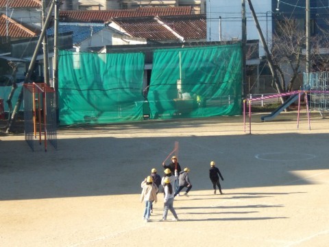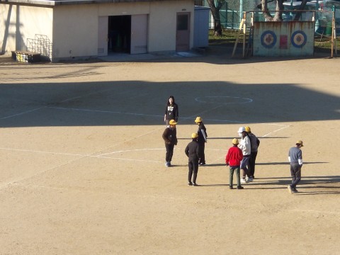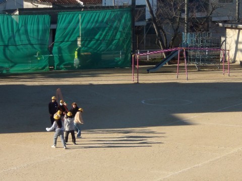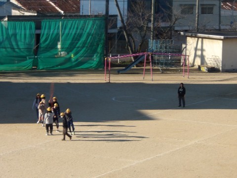 欠席者が多く,運動場の広い場所でみんな遊びをしています。
