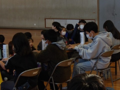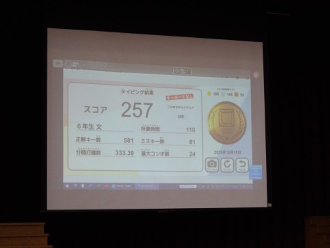 タイピングチャンピオン決定戦の6年生決勝戦が,休憩時間に開催されました。たくさんの深井っ子が応援に来ています。クラスの予選会に勝ち上がった各クラス2人が,くじを引いて順番を決めます。開始の合図とともに,スタート!その様子が体育館のスクリーンに映し出されます。今日は,時間の関係でゆうしょうしゃを決めることができませんでした。来週には,優勝者が決まります。また,ぜひ応援に来てくださいね。
