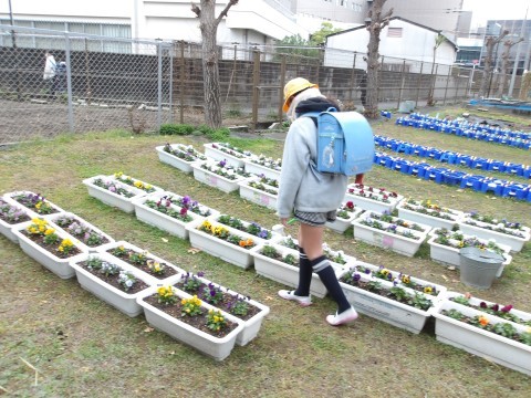 5年生が,卒業式・入学式に飾るパンジーのお世話をしてくれています。ありがとう。