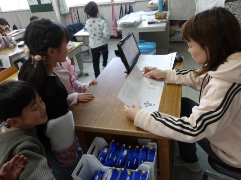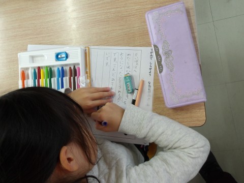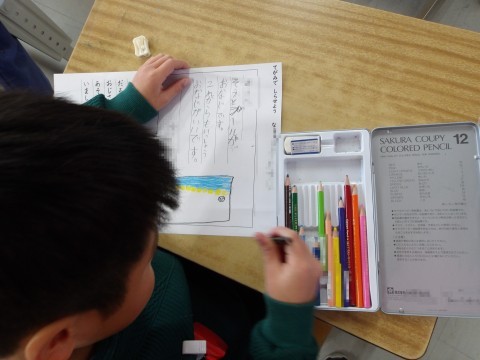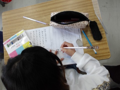 国語「てがみでしらせよう」では,自分ができるようになったことなど,誰に,どんなことを伝えるのかを考えて文章にします。絵を描いている人もいます。
