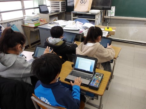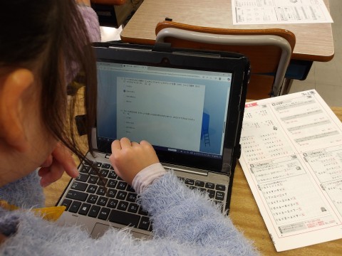 学校アンケートに取り組んでいます。先生が丁寧に解説しながら進めています。