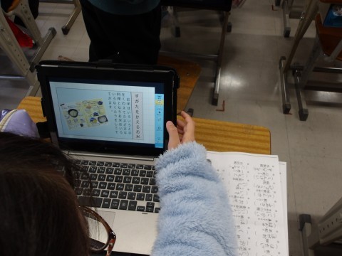 国語「すがたを変える大豆」で取り組んだ,自分たちが調べパワーポイントにまとめた食べ物について,共有しています。みんな分かりやすく,工夫をしてまとめられています。