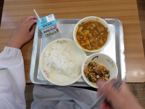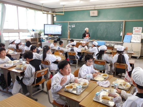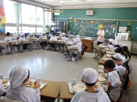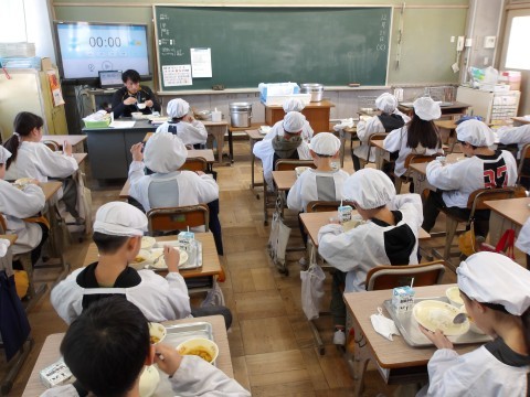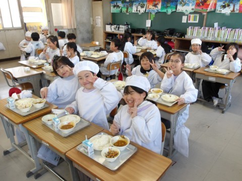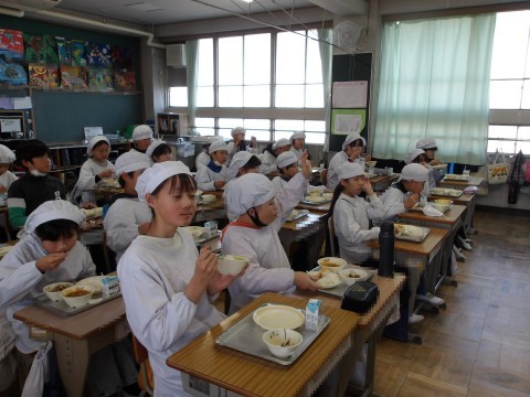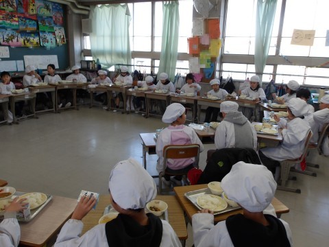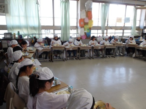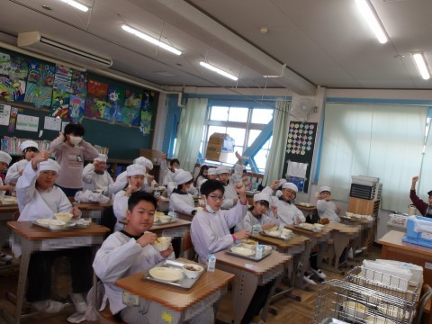 2学期最後の給食を楽しくいただいています。完食のクラスが何組もありました。