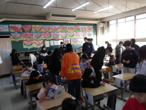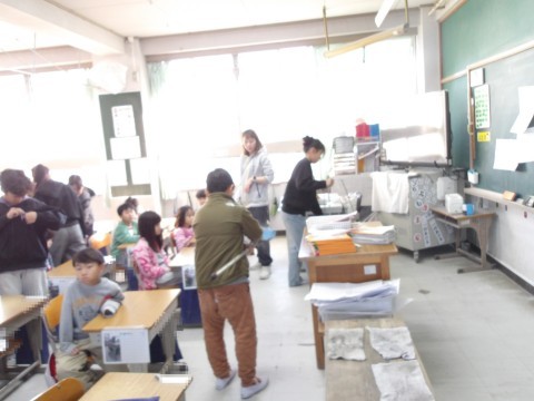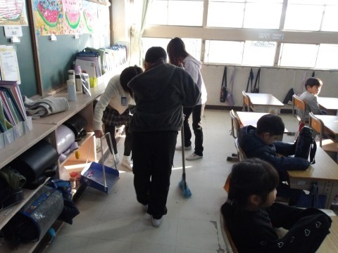 机やいすの裏の埃をとる作業を,6年生が手伝いに来てくれました。ありがとう。