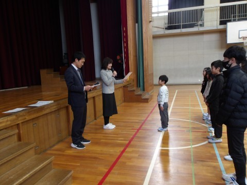 令和7年度2学期終業式を行いました。校長先生からは,「終業式に3つの話をします。1つめは“振り返る”です。2学期は,たくさんの学習や行事がありました。頑張った自分を褒めてあげましょうよかったことも,そうでなかったことも振り返ることで次につながりますよ。2つめは“1年の計は元旦にあり”つまり何事も初めに計画を立てることが大事ということです。毎日取り組めることを決めてもいいですよ,元旦に目標を決めて紙に書き,見えるところに貼っておきましょう。3つめは,この1と2を“行動にうつす”ということです。振り返ってやるべきことに取り組み,目標を立てで早速始めること,そして,冬休みにしかできないことをやってみてみるのもいいですね。この後,通知表をもらいます。成長した自分をいっぱい褒め,もしだめなところがあっても、それは、これから伸びるチャンスがあるということです。行動に移しましょう。また,お休みの間に事故や怪我に遭わないように気をつけてくださいね。3学期始業式に元気なみなさんに会えることを楽しみにしています。」と話がありました。