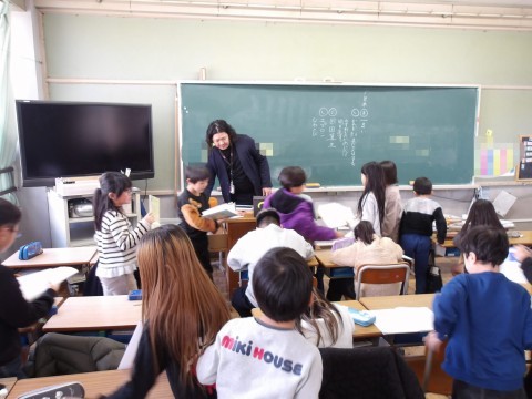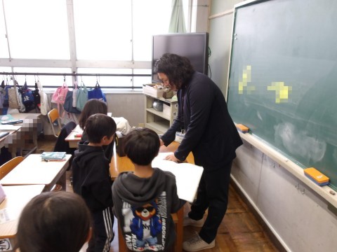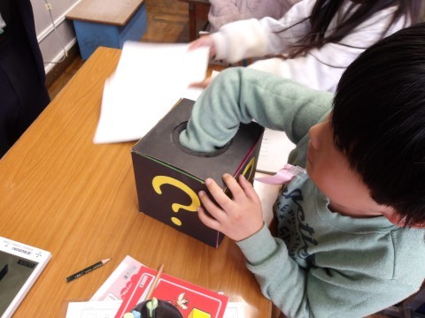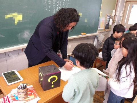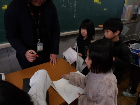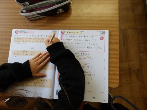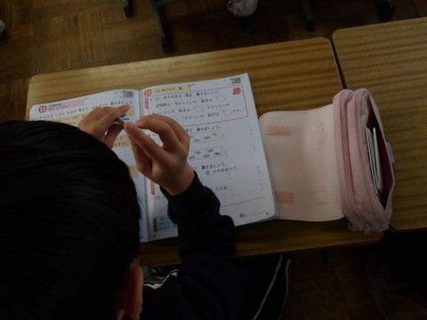 連絡帳を書いて,先生に点検してもらった人から,席替えのくじを引いているようです。席替えが終わったら,新しく配られた算数ノートで復習をしています。