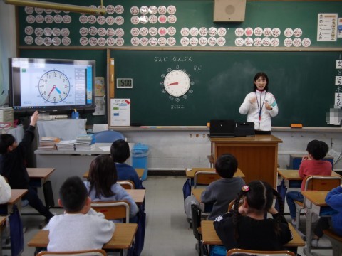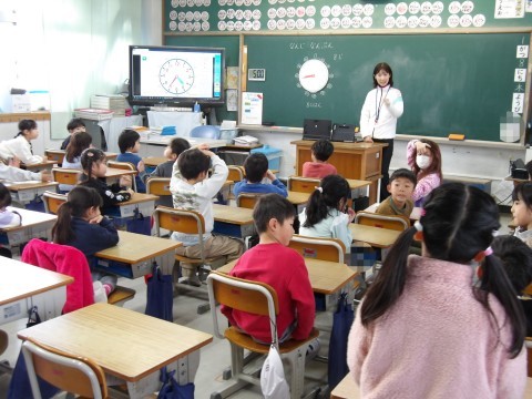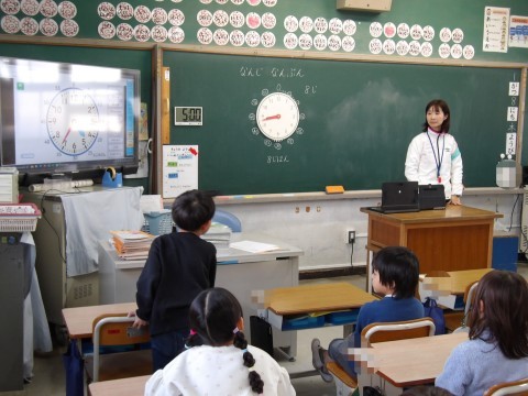 算数では,「なんじ なんぷん」の学習をしています。