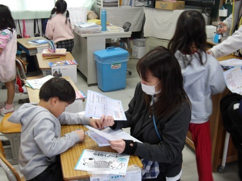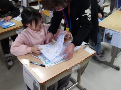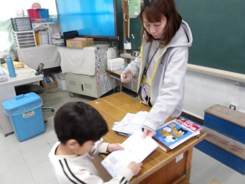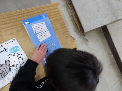 新しいドリルが配られています。名前を書いて,使う準備をしています。