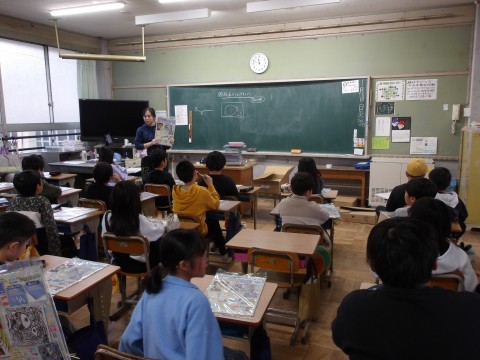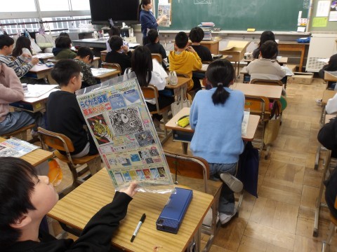 図工では,版画を制作します。海の生き物を大きく描いて回りの表現します。彫刻刀も使うので,気を付けて取り組みましょう。