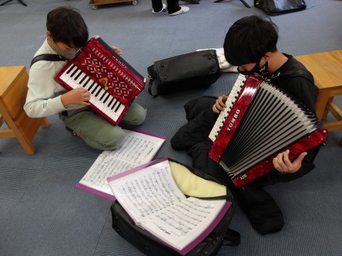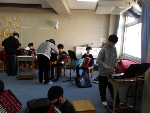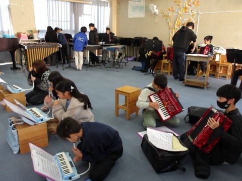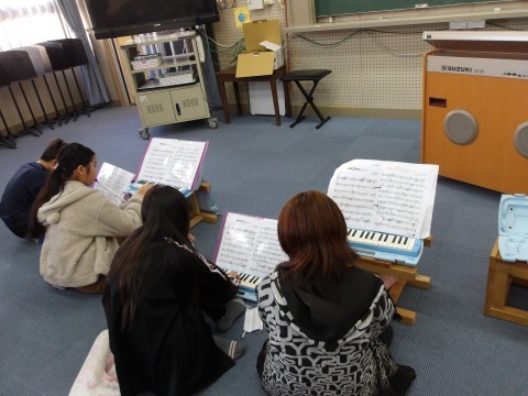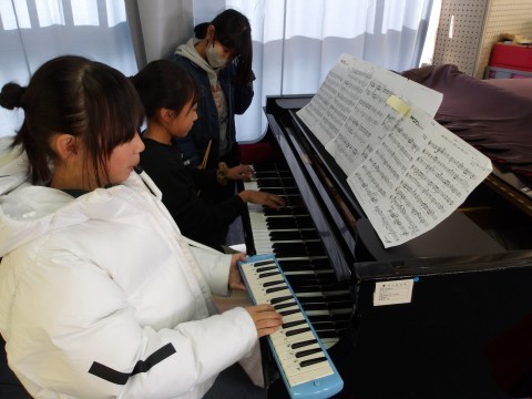 こちらのクラスの合奏曲は,「名探偵コナン」です。