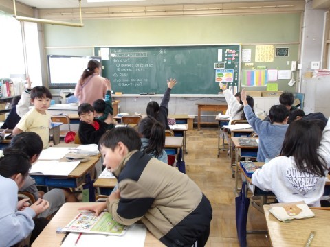 算数では,1000の位の計算の式言葉で表します。マイタイムで学習を進めます。