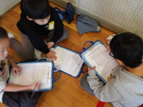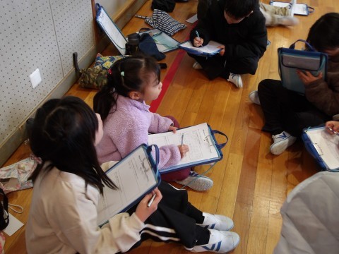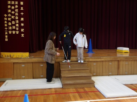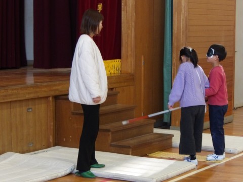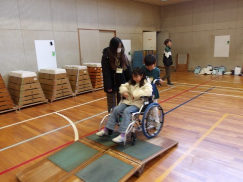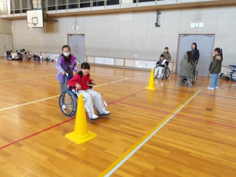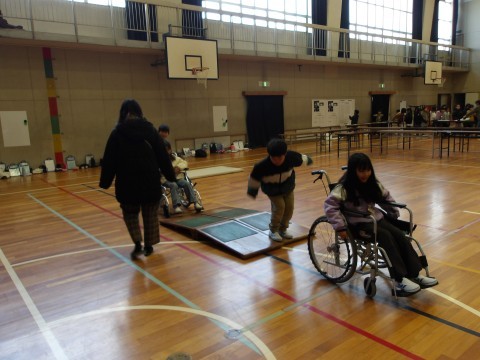 保護者の方々も参加くださり,キャップハンディ体験が行われています。点字の打ち方や,車いす,白杖の体験をしています。実際に体験してみると,気づくことがいっぱいあったようです。