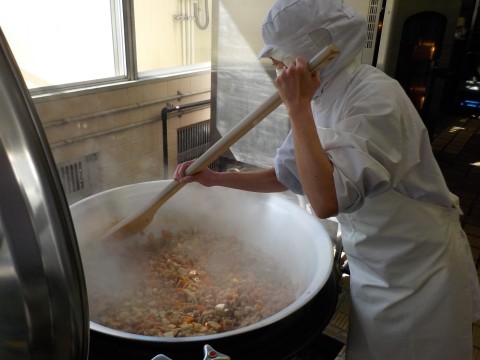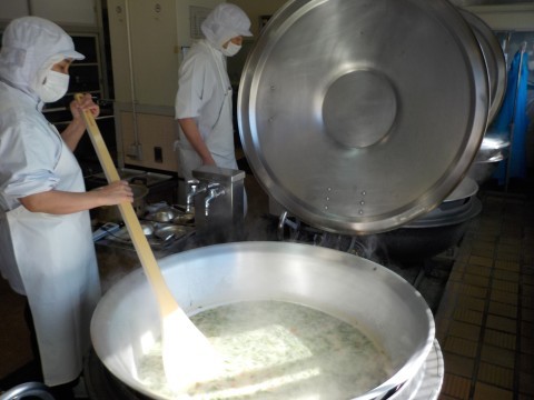 今日は,正月献立で『ごはん・牛乳・関西風雑煮・ぶりの照り焼き・煮しめ』でした。正月献立は,新しい年を迎えられたことに感謝し,その年の豊作や家族の健康や幸せを願う昔から食べられてきた行事食です。お正月にお雑煮は,食べましたか?お雑煮は,地域や家庭によって使う材料に特徴があります。給食では,関西風の白みそ仕立てでした。