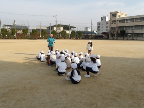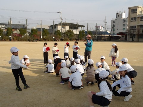 体育では,体をあたためて動きをスムーズにするため,かわり鬼をしてから始めます。