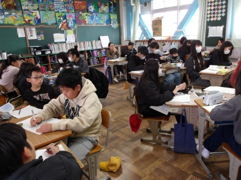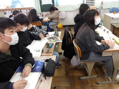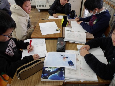 国語「言葉のスケッチ」では,グループで写真をみながら読み手や聞く人に情景が伝わるには,どのように表現を工夫したら良いかを考え,文章を書いていきます。