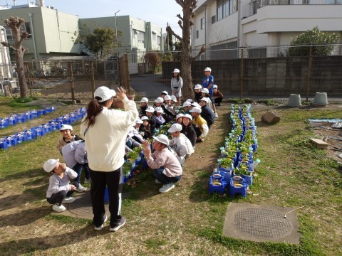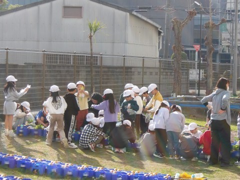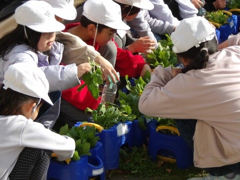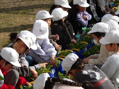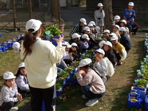 生活科で育てている「甘味カブ」の間引きを行いました。