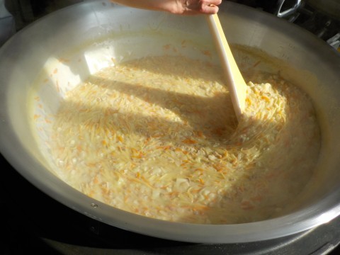 クリームスパゲティには,堺市産のカリフラワーが入っています。カリフラワーは,ビタミンCがたくさん含まれている野菜です。秋から冬が旬なので,ビタミンCが不足しがちな冬に食べるとよいですね。