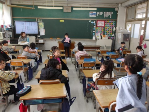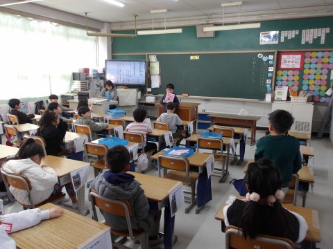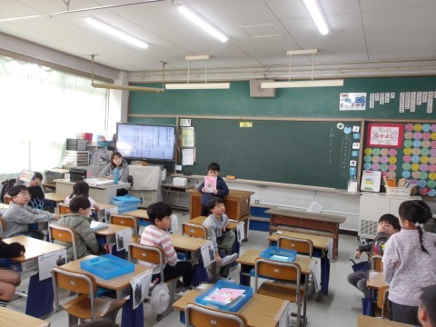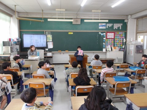 こち他のクラスでは,好きなお話を紹介しています。紹介し終わったら,聞いている人が質問をしたり感想を伝えたりしています。