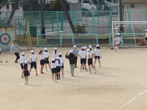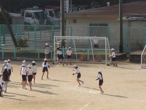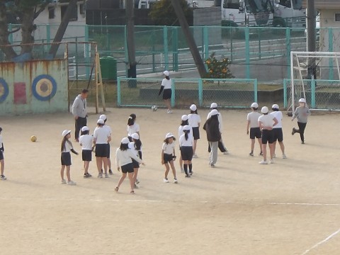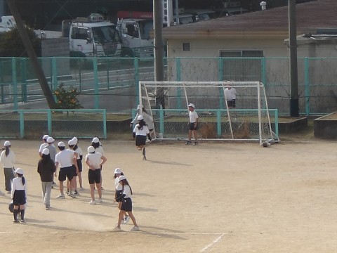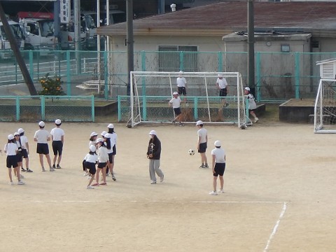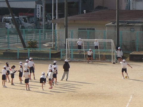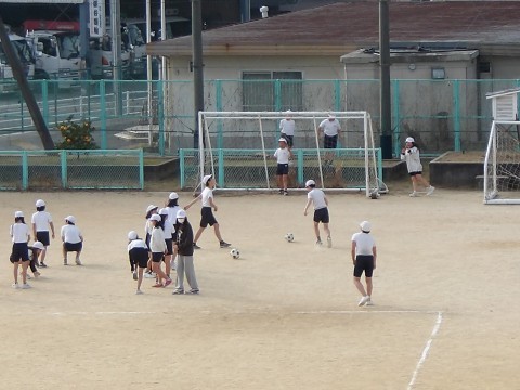 体育では,サッカーに取り組んでいます。シュートの学習をしています。