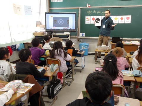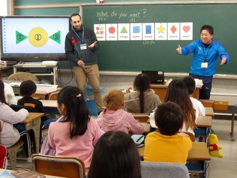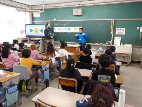英語では,「What do you want?」の学習です。大きな声でしっかりと英語で話しています。