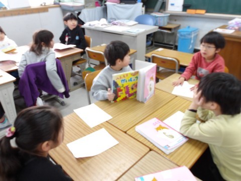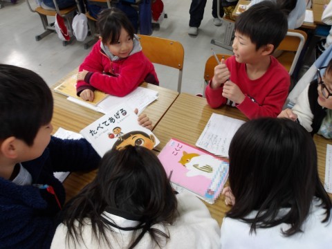 国語では,すきなお話を紹介します。もう一度紹介したい人がたくさんいるので,班で紹介をします。