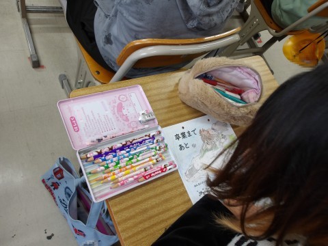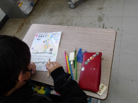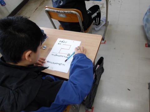 カウントダウンのカレンダーを作成しています。丁寧に,みんなへのメッセージが伝わるように仕上げています。