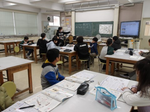 家庭科「身の回りをきれいにしよう」では,家庭科室のごみを見つけて,地底た場所,汚れの種類,気づいたことをまとめ,汚れに合った掃除の仕方について学習します。