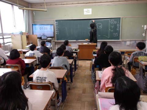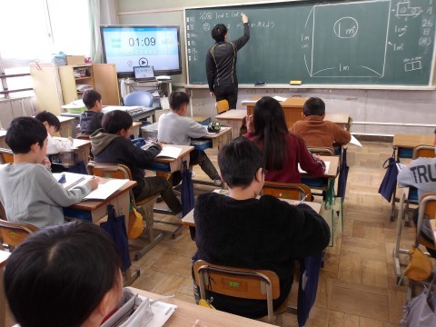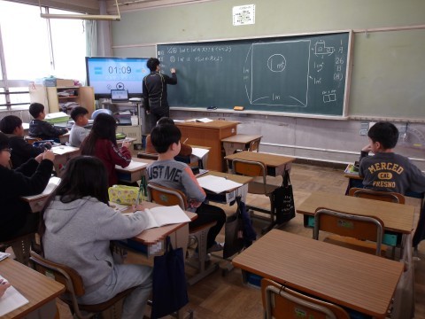 算数では「1㎥」について学習をしています。たて・よこそれぞれに,1㎠がいくつあるかを考えます。