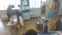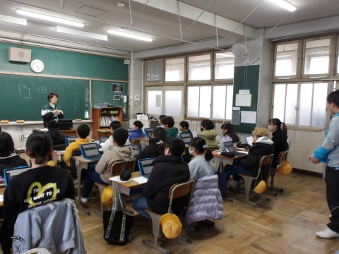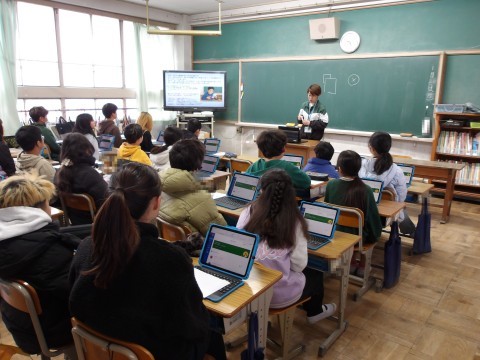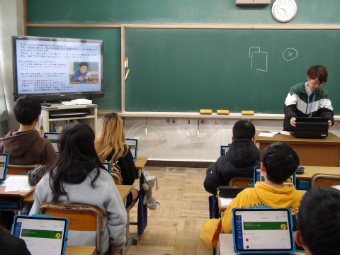 新しいタブレット端末のギガ開きをしています。もういちど,正しい使い方について先生が説明をしています。