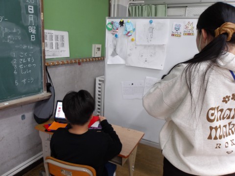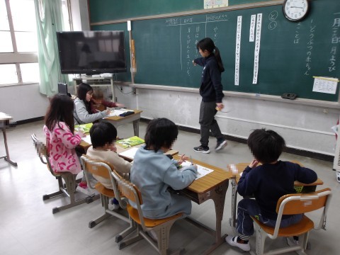 1年生は,国語「どうぶつの赤ちゃん」について学習をしています。2年生は,漢字の練習です。それぞれが,課題に集中して取り組んでいます。