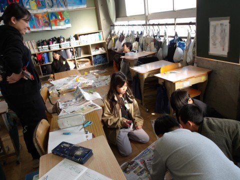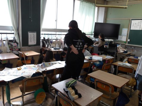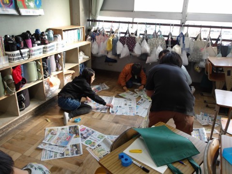算数では,「1㎥」について学習をしています。実際に新聞紙を使ってどのくらいの大きさなのか,班で協力して作ってみます。正確に作ることができたかな。