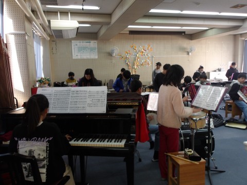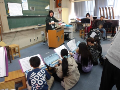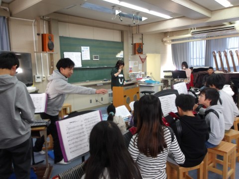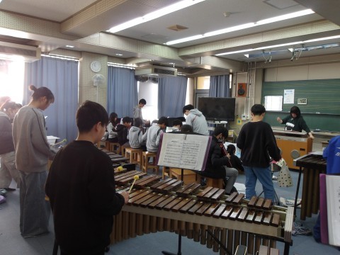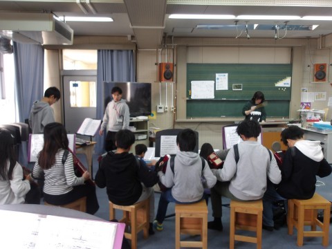 クラス合奏「名探偵コナン」のテーマを練習しています。