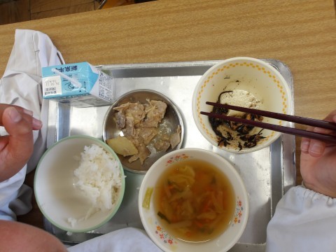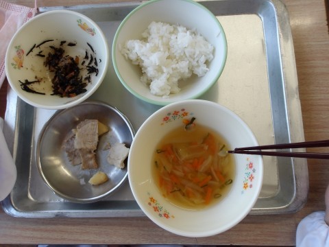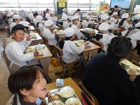 1月24日~30日は「全国学校給食週間」です。学校給食が始まったのは,約140年前です。戦争で一時中断されましたが,戦後の食べ物の少ない中でアメリカの団体が食べ物を送ってくれたことで再開されました。今日の献立「すいとん」は,そんな仲よく食べられていました。このことを記念し,学校給食週間ができました。