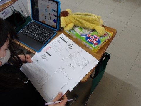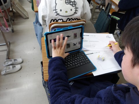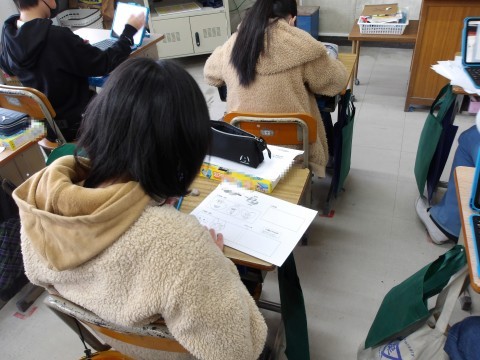 図工では「ひき出しラック」を制作します。どんなデザインにするか,下絵を描いています。
