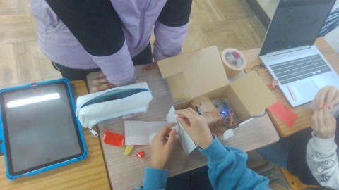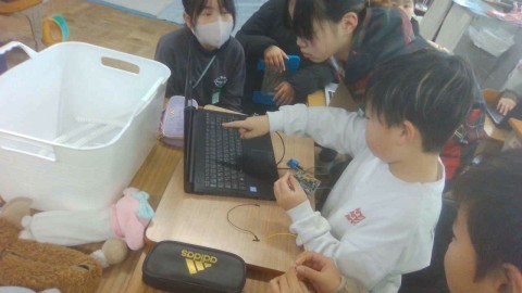 STEAM!思いを形にする学習を年間を通して続けています。今日も,「創才サイエンスラボ」の講師の方に来校いただきました!自分たちの考えたように動いたり,止まったりとTry and Error を繰り返しながら,学習に取り組んでいます。ロボットが動いたら喜んで,思いの動きをしなかったら,もう一度,みんなで考えてとあっという間の2時間でした。